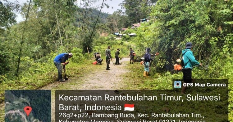 Mamasa, - Babinsa Koramil 1428-03/Mambi gotong royong bersama warga Melakukan pembersihan badan jalan yang mulai di tumbuhi rumput liar dan lumut di Desa Bambang kecamatan Bambang Kabupaten Mamasa, Jum'at (12/12/2025)